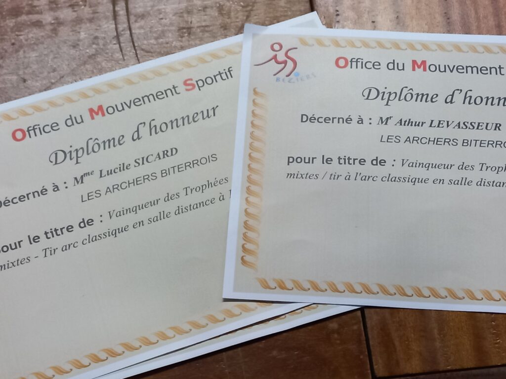 Ils ont reçu un diplôme d’honneur pour leur victoire au Trophée départemental des mixtes en arc classique (distance 18 mètres).