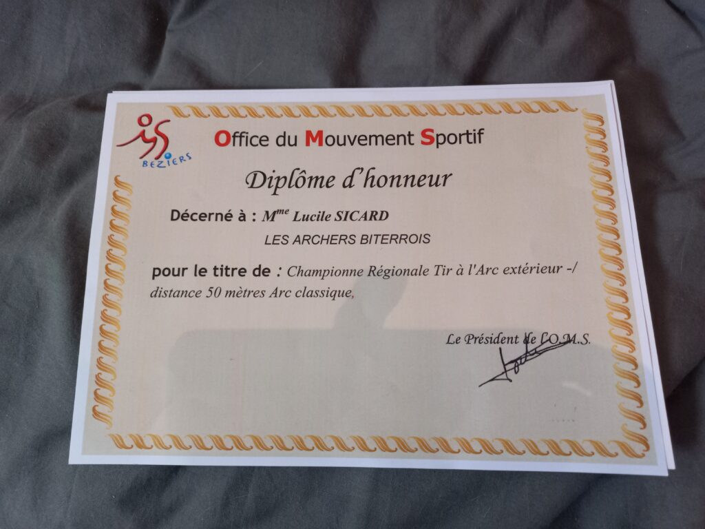 Par ailleurs, Lucile a également été récompensée pour son titre de championne régionale en extérieur dans la catégorie arc classique à 50 mètres.